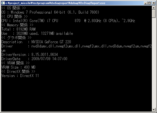 DirectX の IDxDiagProvider を使用して情報を引き出す処理になります。